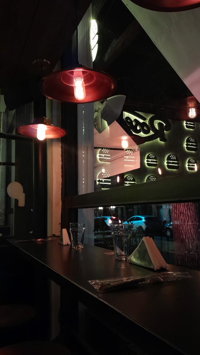 El local se instaló donde era Birra. Tiene mucha barra y mesas afuera, más tablones comunitarios. La música es original, cuando estuvimos sonaba funk y groove argentino. Va con el ambiente tenue del bar. Todo negro y blanco con luces cálidas y madera en un estilo garage.