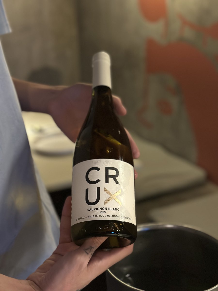 Vino. Tomamos este sauvignon blanc 2022 de Crux bastante seco y perfumado. Tienen una linda selección de etiquetas en la carta, fuera de las bodegas comerciales de siempre.