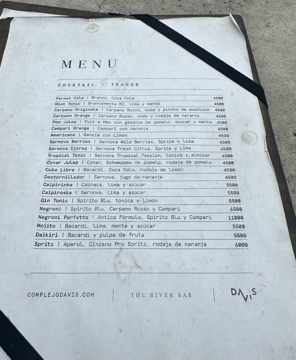 La carta de tragos es bastante clásica pero están bien presentados y ejecutados y casi todos están en el rango de $4.500 a $6.500 (salvo el negroni perfetto que tiene el Antica formula que sale un ojo de la cara y está $11.000).
