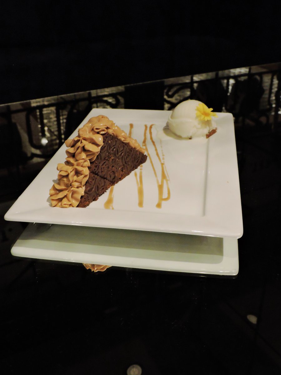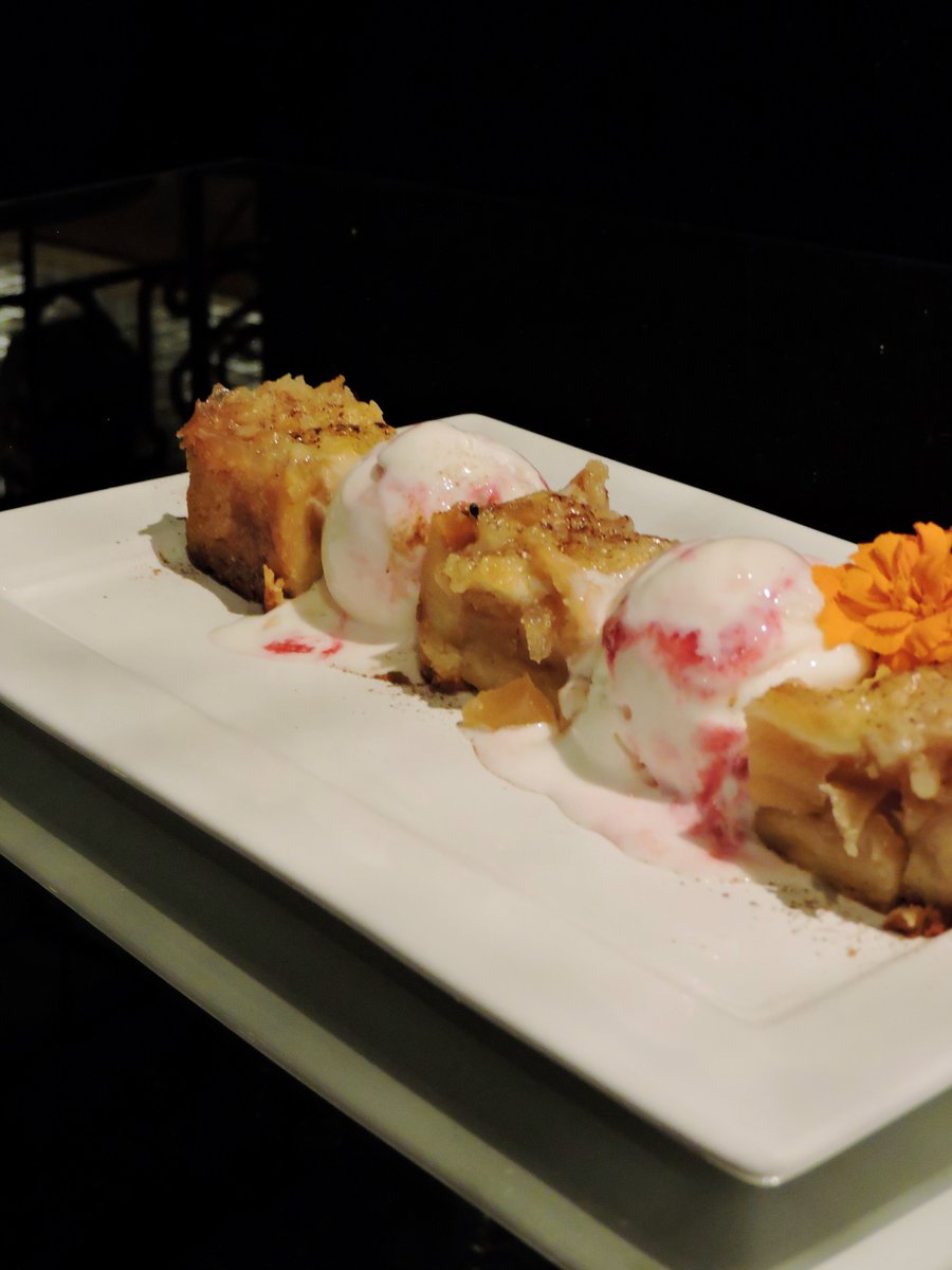 Postres clásicos de restó con un girito en la presentación. Chocotorta con helado de americana $7.500 / Crumble de manzana $7.500