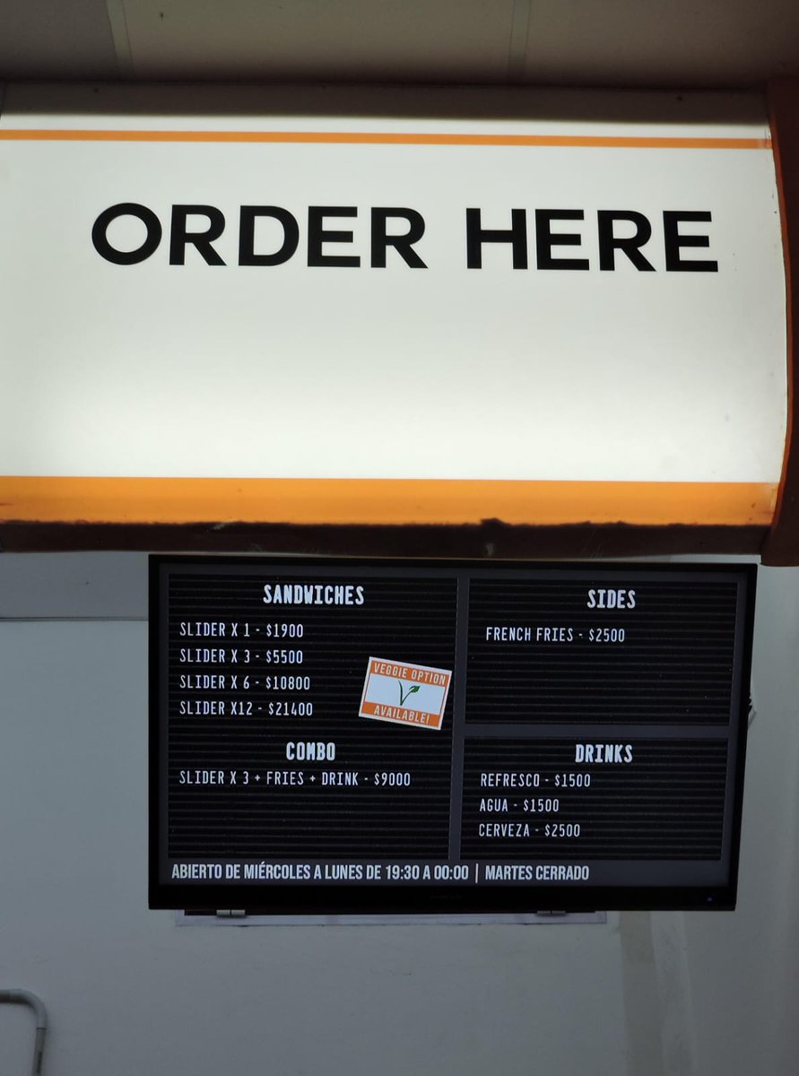 Afirman ser el primer local de sliders del país, no tengo corroborado el dato pero quizás salga en los comentarios. Todavía debe un poco para llegar a lo que quiere ser, pero quizás lo logre con el tiempo y terminando de acomodar el producto. Creo va encaminado para diferenciarse en ciertos aspectos de la oferta rosarina.