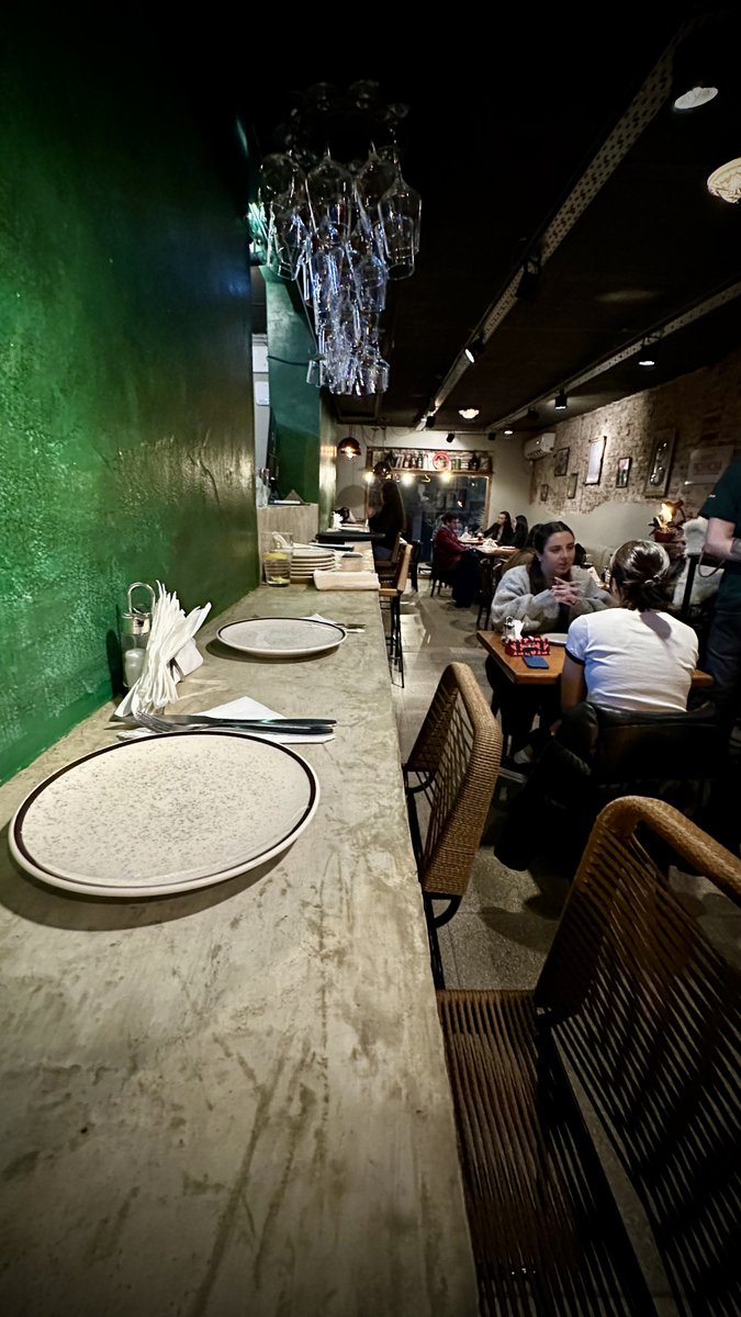 Algo muy lindo es la atmósfera. El local es angosto y largo y el ambiente es cálido, amable. Por momentos un poco ruidoso por las conversaciones pero nunca llegó a molestar. Nota: casi todo el público era femenino. Muchas mesas de amigas tomando vino y vermut y alguna pareja.