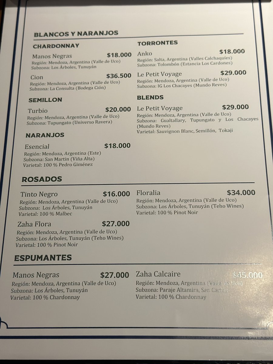 Tienen una buena carta de vinos armada con una sommelier. Yo tomé un par de copas de Pinot Noir de Turbio. Hay muchas opciones por botella de proyectos lindos fuera de la carta comercial de la industria. Están bien elegidos.