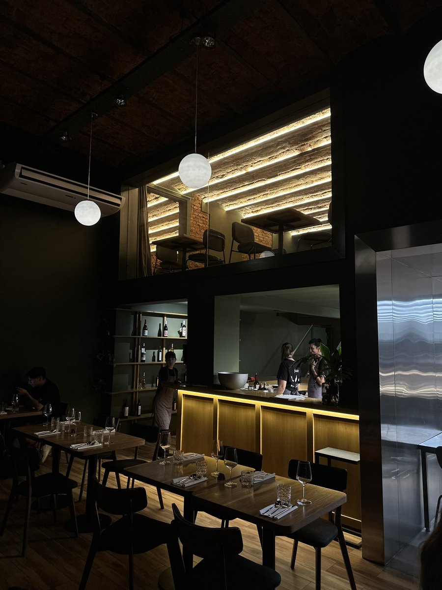 1) Lindo lugar, bien industrial, ambiente agradable y buena música baja para poder charlar, decorado con minimalismo y con una planta superior más íntima. No es gigante pero las mesas no están amontonadas y no te sentís invadido