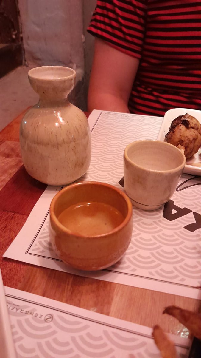 Incluso sirven el sake en un cuenco y pequeños vasitos. Si lo pedís te lo sirven tibio, como se toma en algunos momentos del año en japón. Es una bebida dulce y delicada, con poco gusto a alcohol (tiene alrededor de 16º).