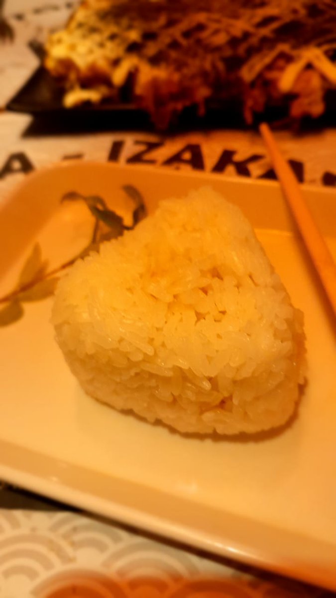 Onigiri. Una bola triangular de arroz relleno de carne de cerdo y una salsa agridulce.