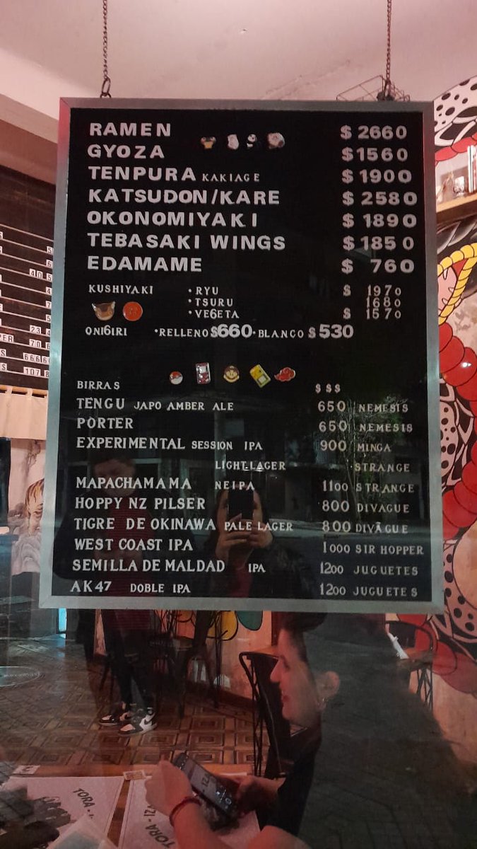 La propuesta gastronómica es comida callejera japonesa, cerveza artesanal premium y bien seleccionada (hay de Juguetes Perdidos y Strange, que es de lo mejor hoy en el país) y tragos, algunos con sake (muy muy buenos).