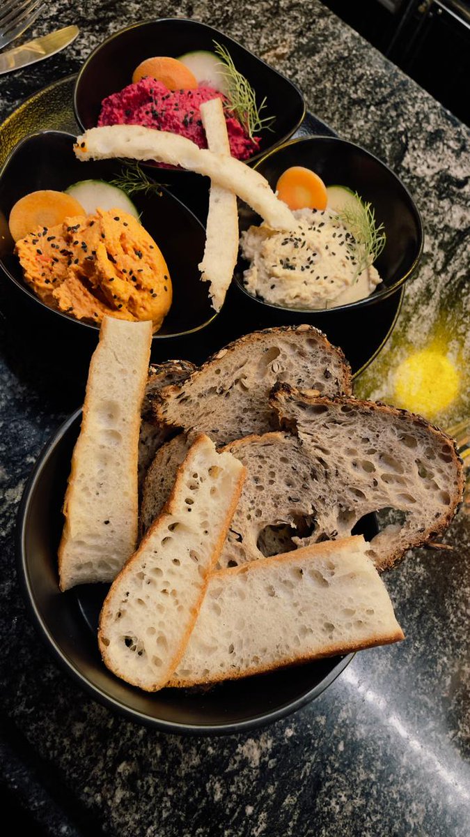 Miren lo que voy a decir, pero es algo en lo que me fijo porque soy un gordo claramente. La panera es ESPECTACULAR. Pan de masa madre casero con semillas y focaccia. Muy bueno.