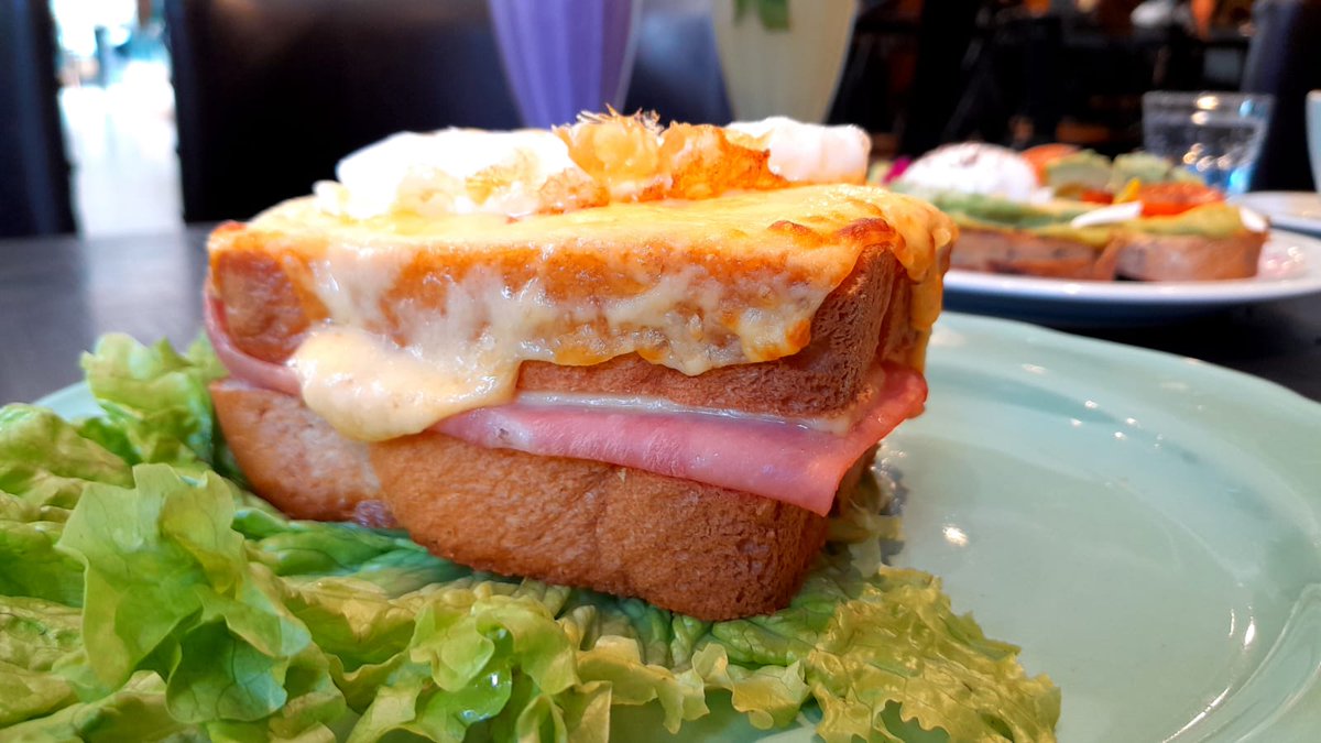 CROQUE MADAME: pan de molde de papa, jamón, sardo, muzzarella, huevo. $2500 (*precios correspondientes septiembre 2023) IMPECABLE. Hermoso a la vista y hermoso en la boca. Bien gratinado. Que cosa rica, tiene capas de queso apiladas, el pan tiene un dejo dulce, el huevo coronando todo como un rey. Es uno de mis sandwiches preferidos. Pesa 200 kg. No le escatiman en nada.