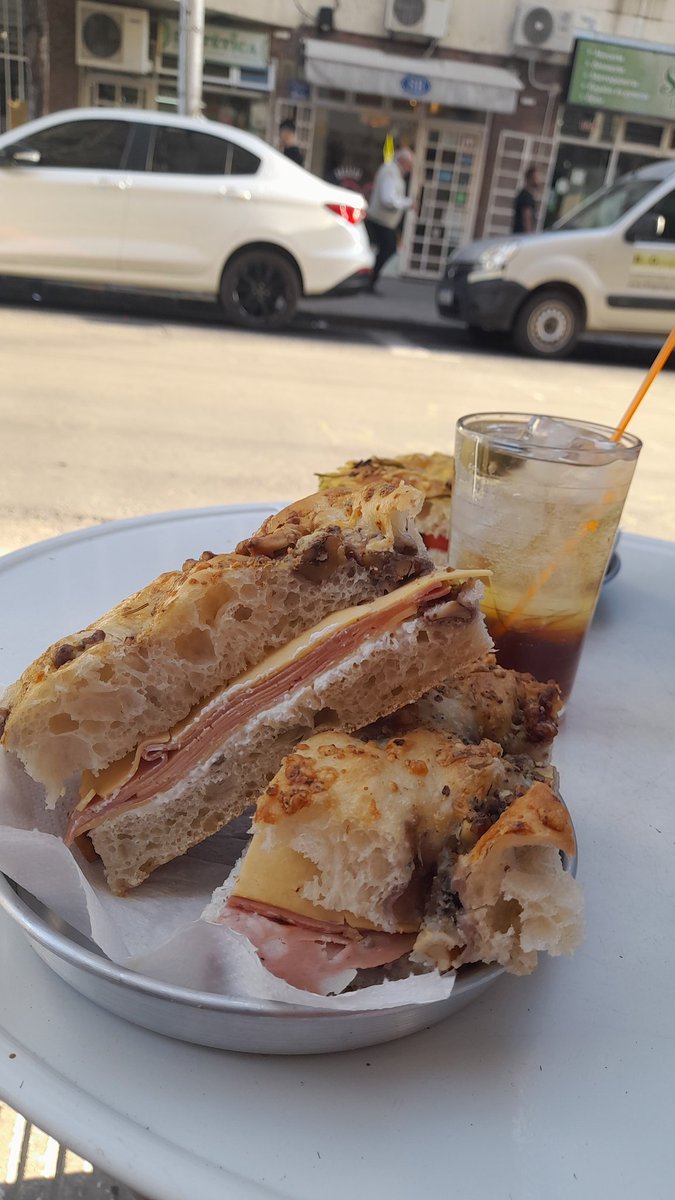 En Barrio Martin, vermut con soda por vaso de varias marcas con la aceituna clavada en espadita de plástico. Es chico, barrita y vereda para comer al paso. El fuerte es la focaccia, un pan aceitoso y esponjoso parecido a la pizza.