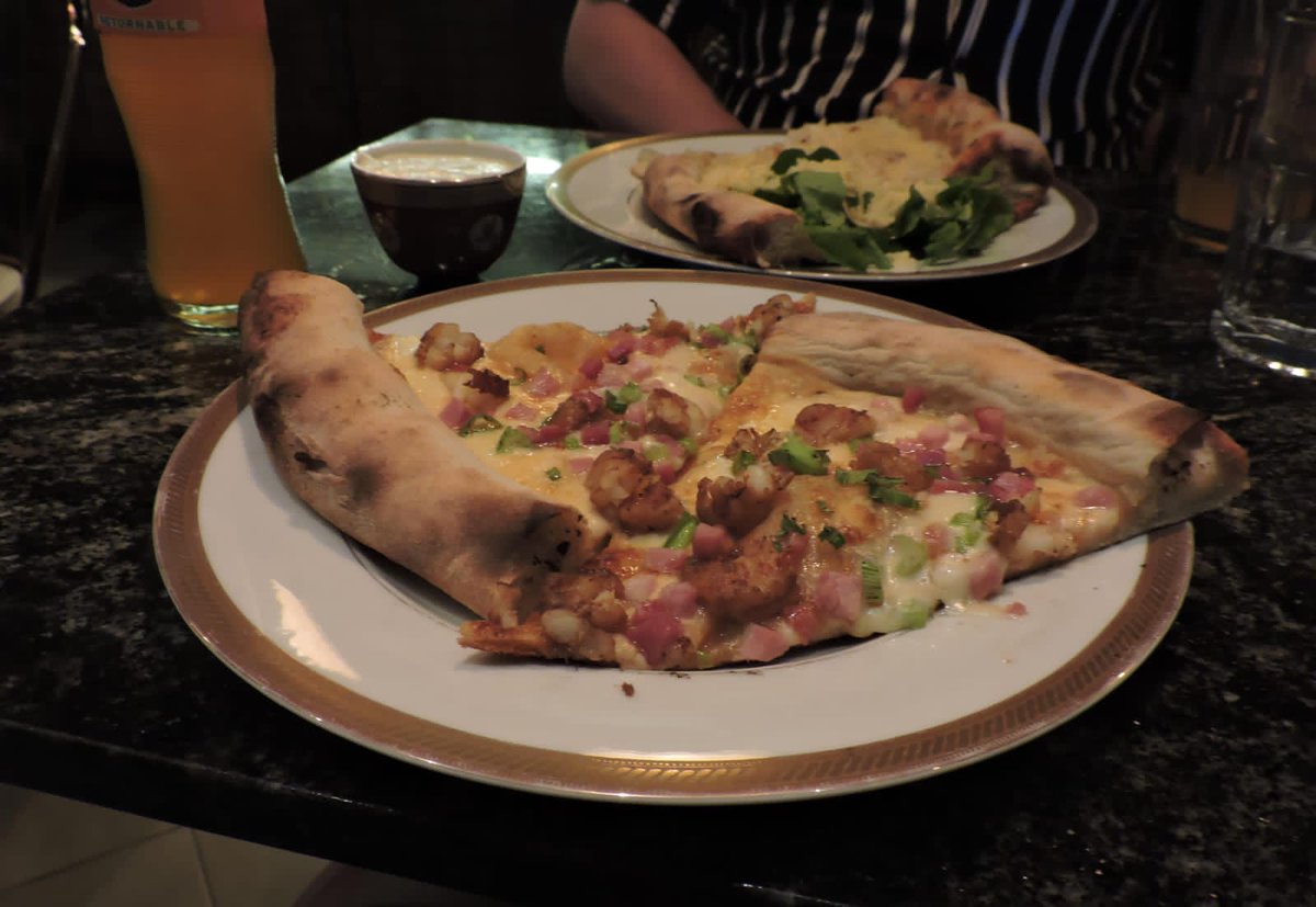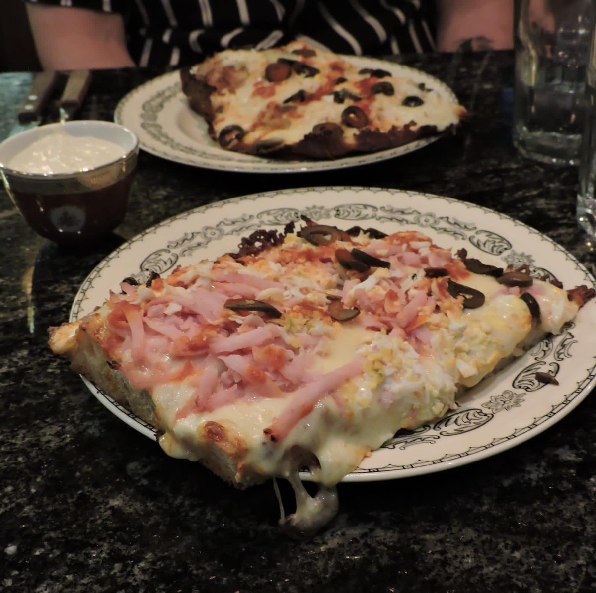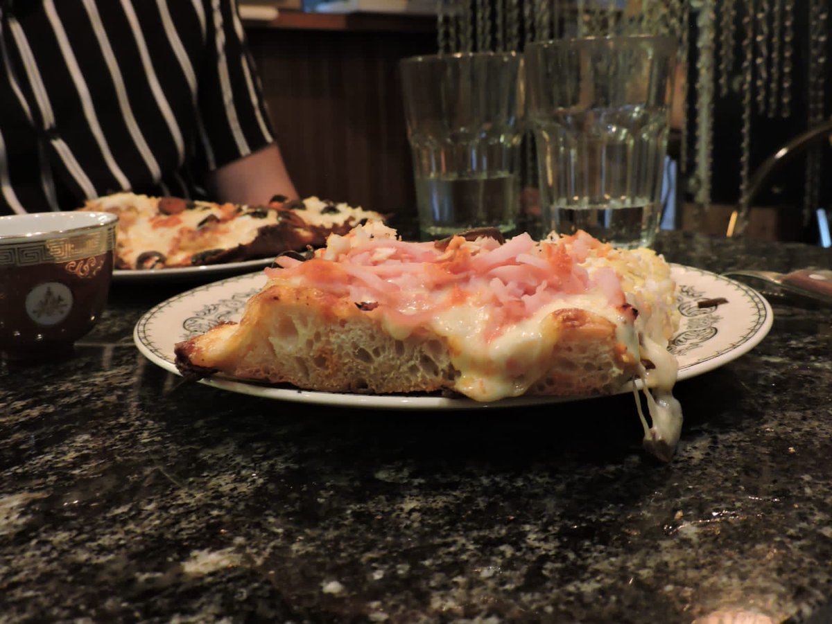 Después me clavé dos slices de la New York de langostinos que para mi es la mejor de este lugar. Porque además lleva verdeo, panceta y un aceite de oliva cítrico que es una DELICIA. También es de masa madre y el borde es un crimen de rico.