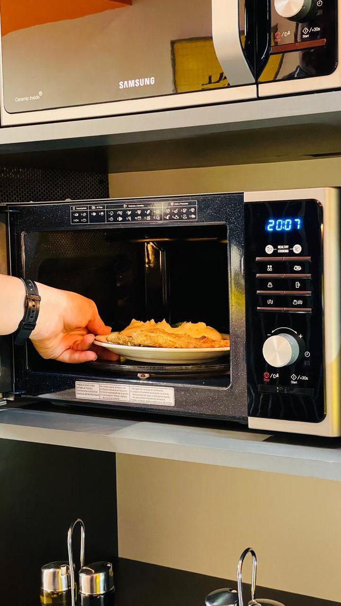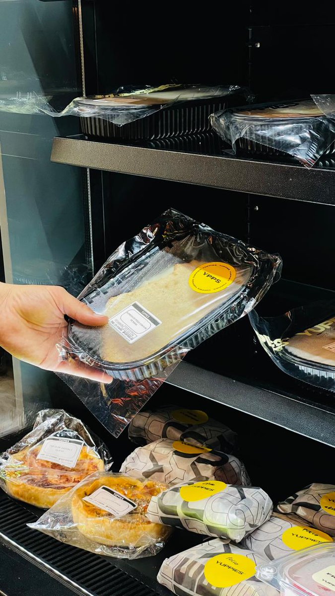 Tienen comida rica y opciones sanas para comer en los 30′ de descanso. El sistema es simple y veloz: hay una heladera con viandas envasadas al vacío, manoteás una bandeja, la pagás y después te la llevás o la metés al micro y la comés ahí mismo. También laburan mucho por envío.